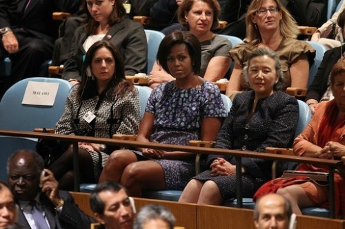 Today, First Lady Michelle Obama joined her husband in New York City. She watched from the audience as President Obama addressed the world leaders during the General Assembly at the United Nations Headquarters. This annual event exists to highlight the current global issues of poverty, war and environmental degradation.