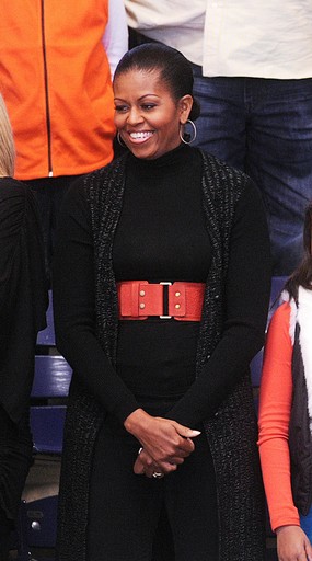 For this special occasion, Michelle chose to wear an elegant, off-the-shoulder, midnight blue gown by Marchesa. She accesorized by adding several thick strands of Tom Binns pearls. Thisevent marks the first time Mrs. Obama has worn Marchesa, a New York-based label, for a major event. The label was started by British born designers Georgina Chapman and Keren Craig in 2004. How fitting for this occasion, no?