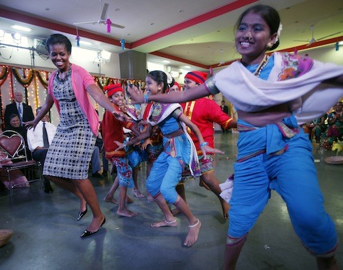 This morning in Indonesia, President Barack Obama and First Lady Michelle Obama took a tour of Istiqlal Mosque in Jakarta. Michelle has been very respectful of the Indonesian culture while on this trip. Yesterday, when in a dress, Michelle chose to also wear loose-fitting trousers, covering her legs. Today, Mrs. Obama continues to honor the Indonesian traditions by wearing a loose-fitting pants suit, and even decided to throw on a head scarf!